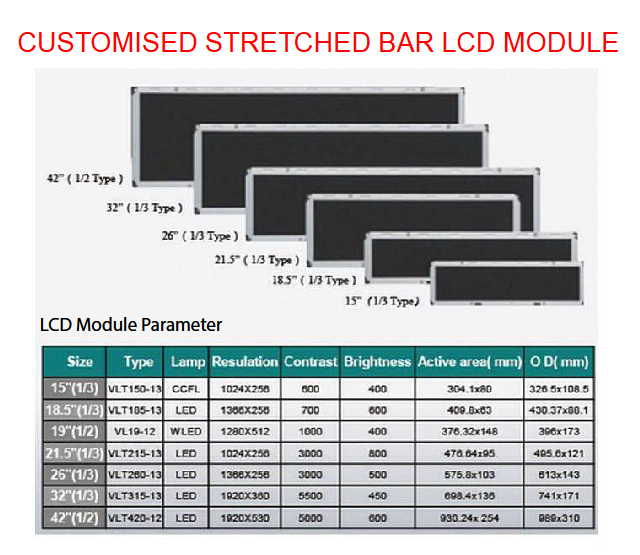 CUSTOMISED STRETCHED BAR LCD MODULE
